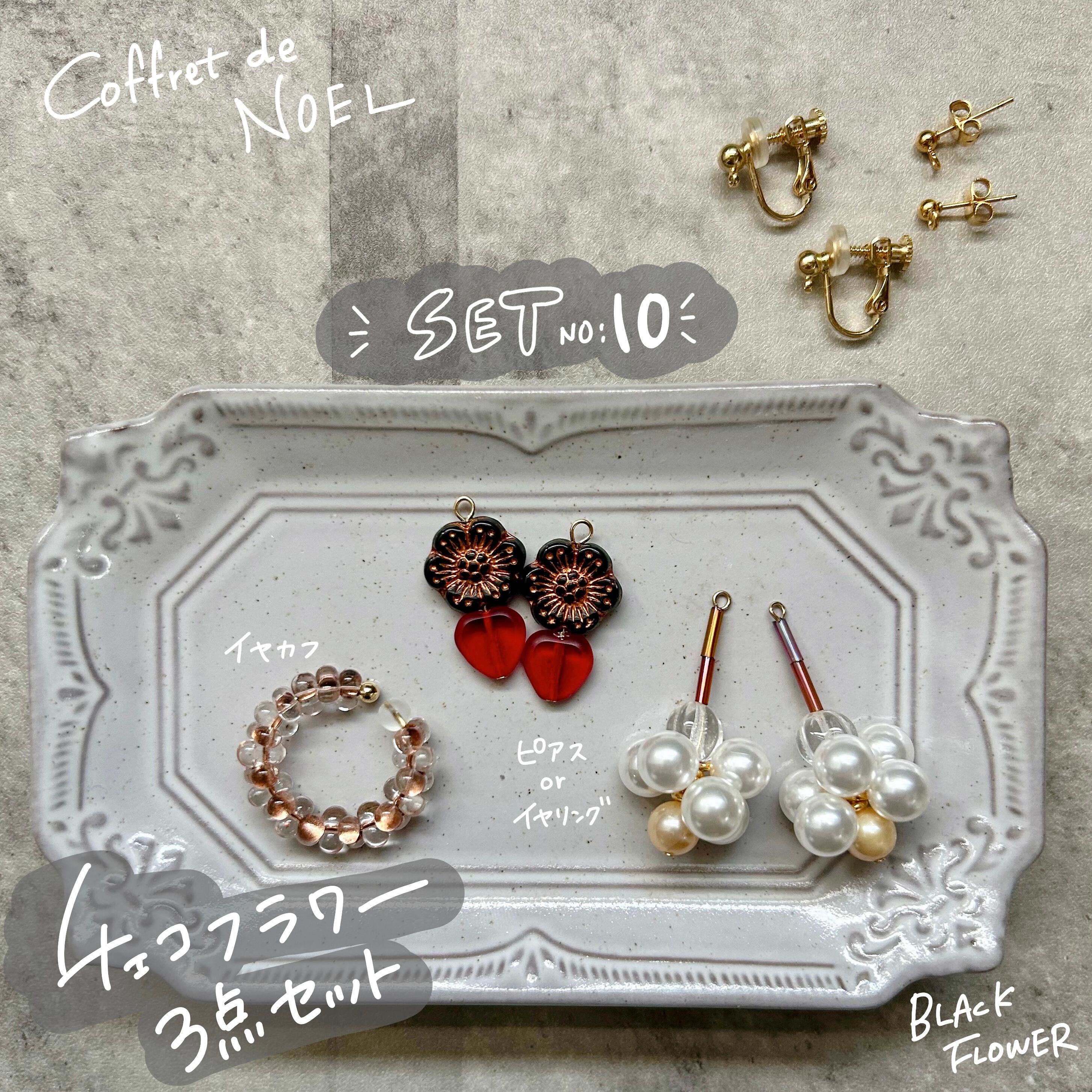 チェコフラワーBK 耳飾り3点セット