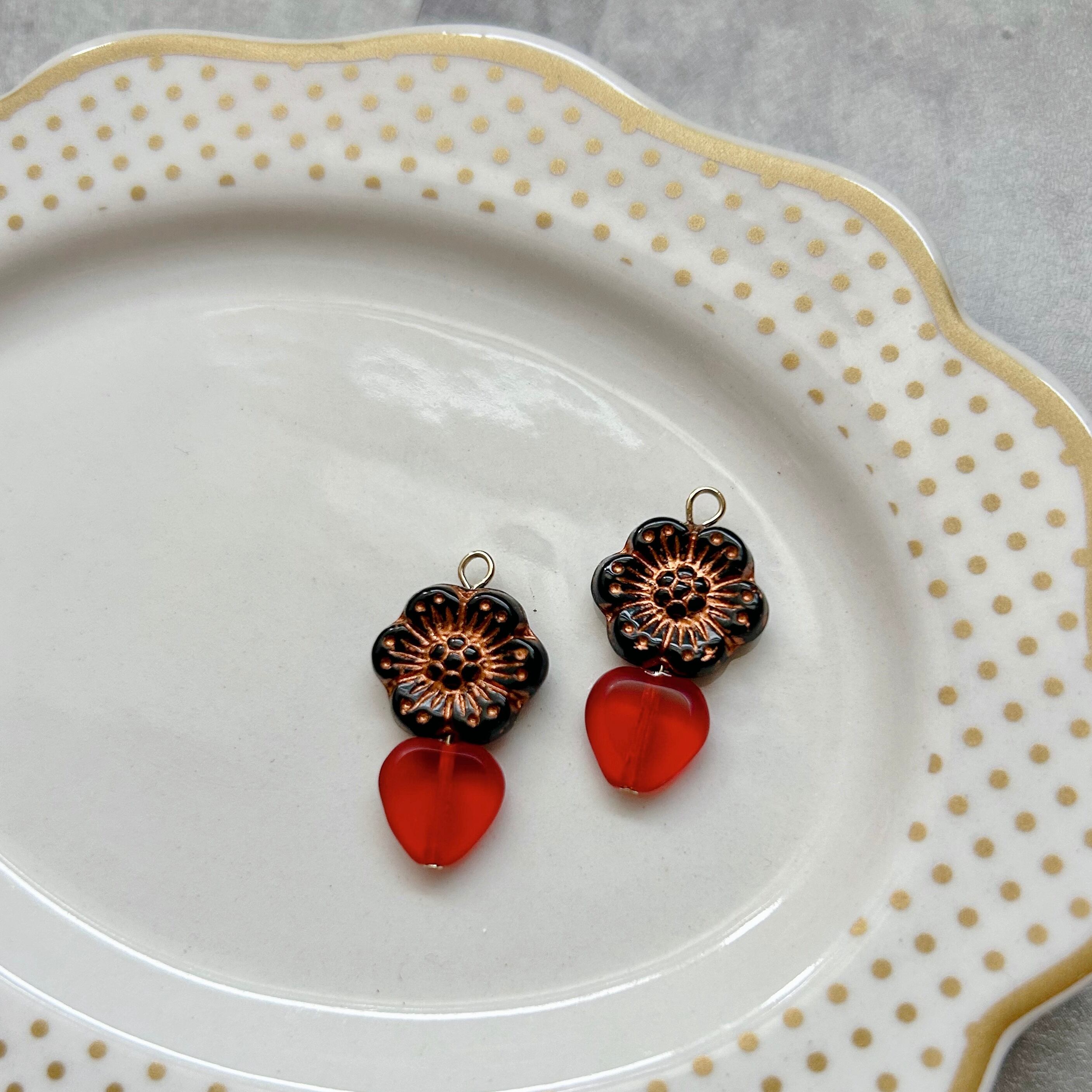 ・チェコビーズのお花モチーフピアス/イヤリング
