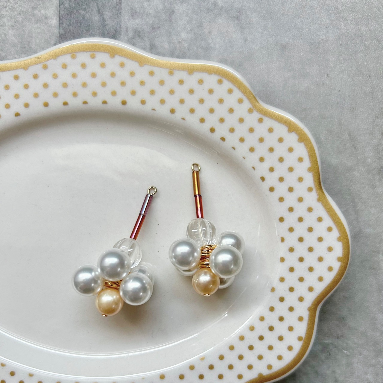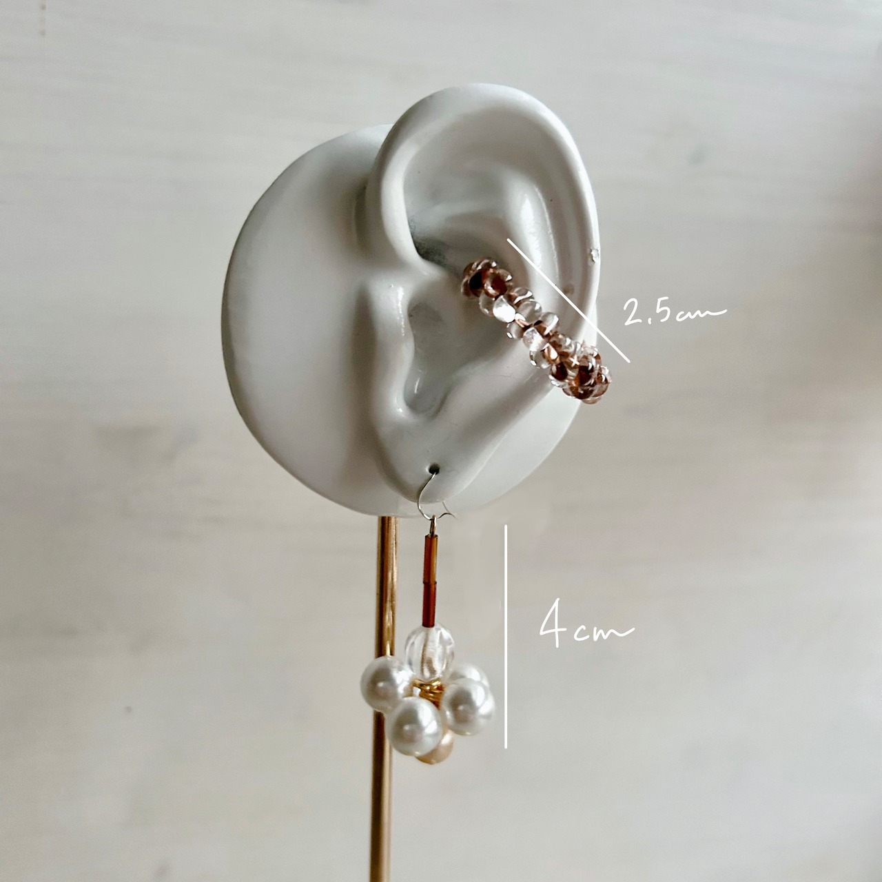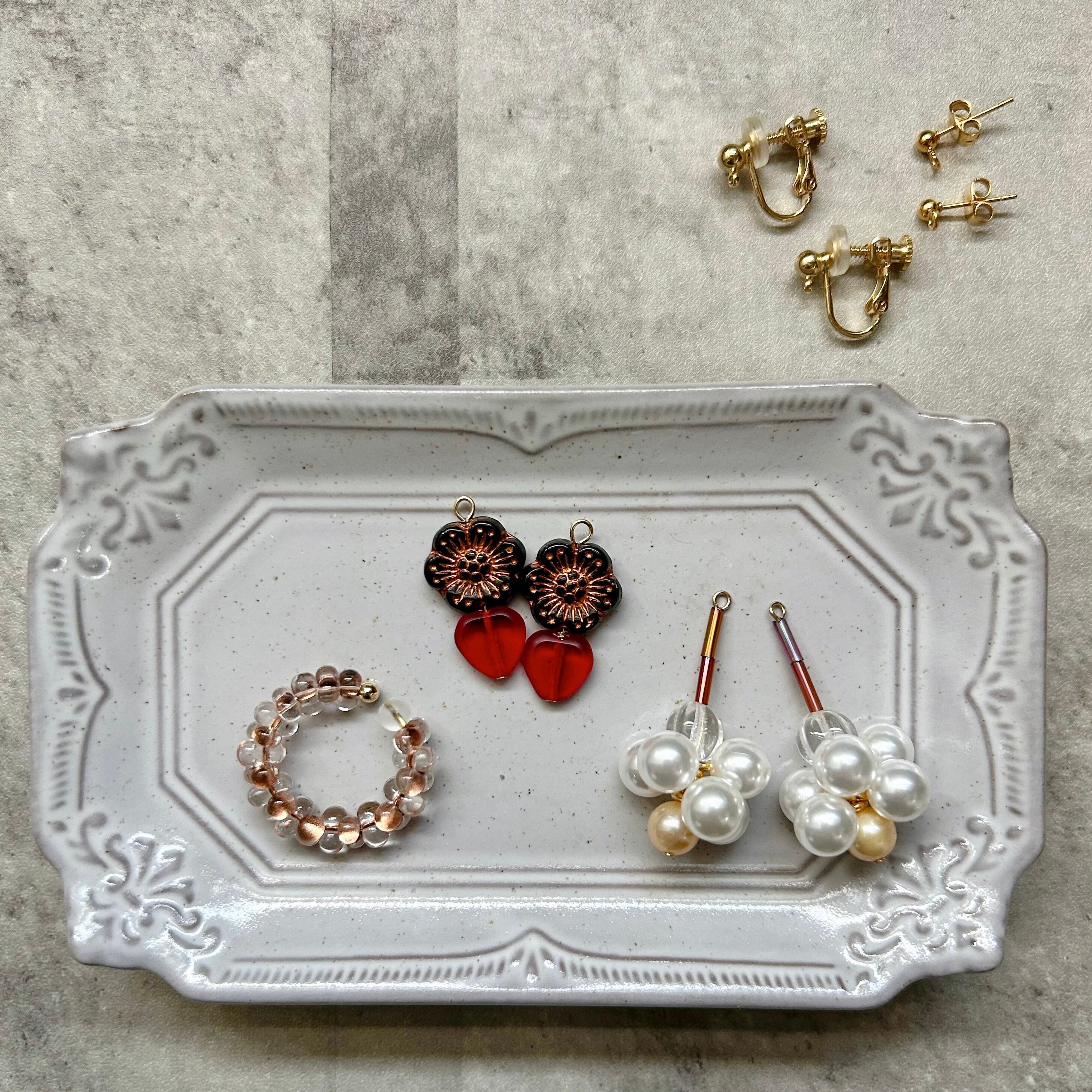 こちらはオーガンジー刺繍を施していないピアス/イヤリングとイヤカフの3点セットです。