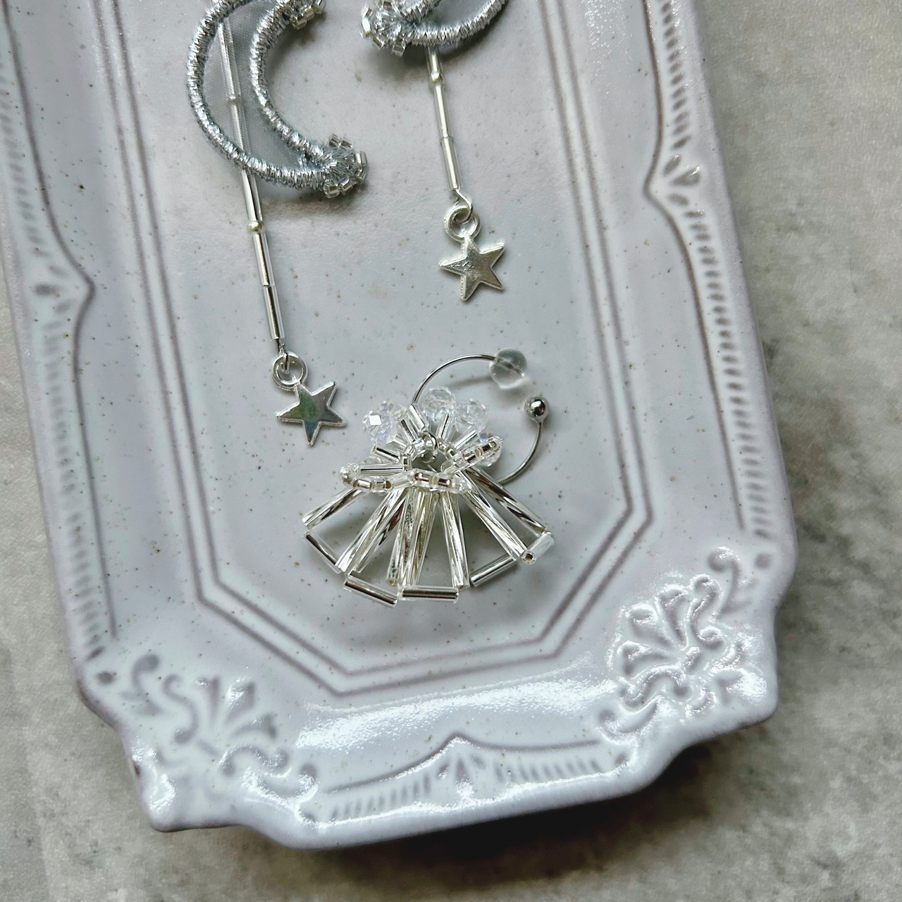 こちらはオーガンジー刺繍アクセ1点とイヤカフの2点セットです。